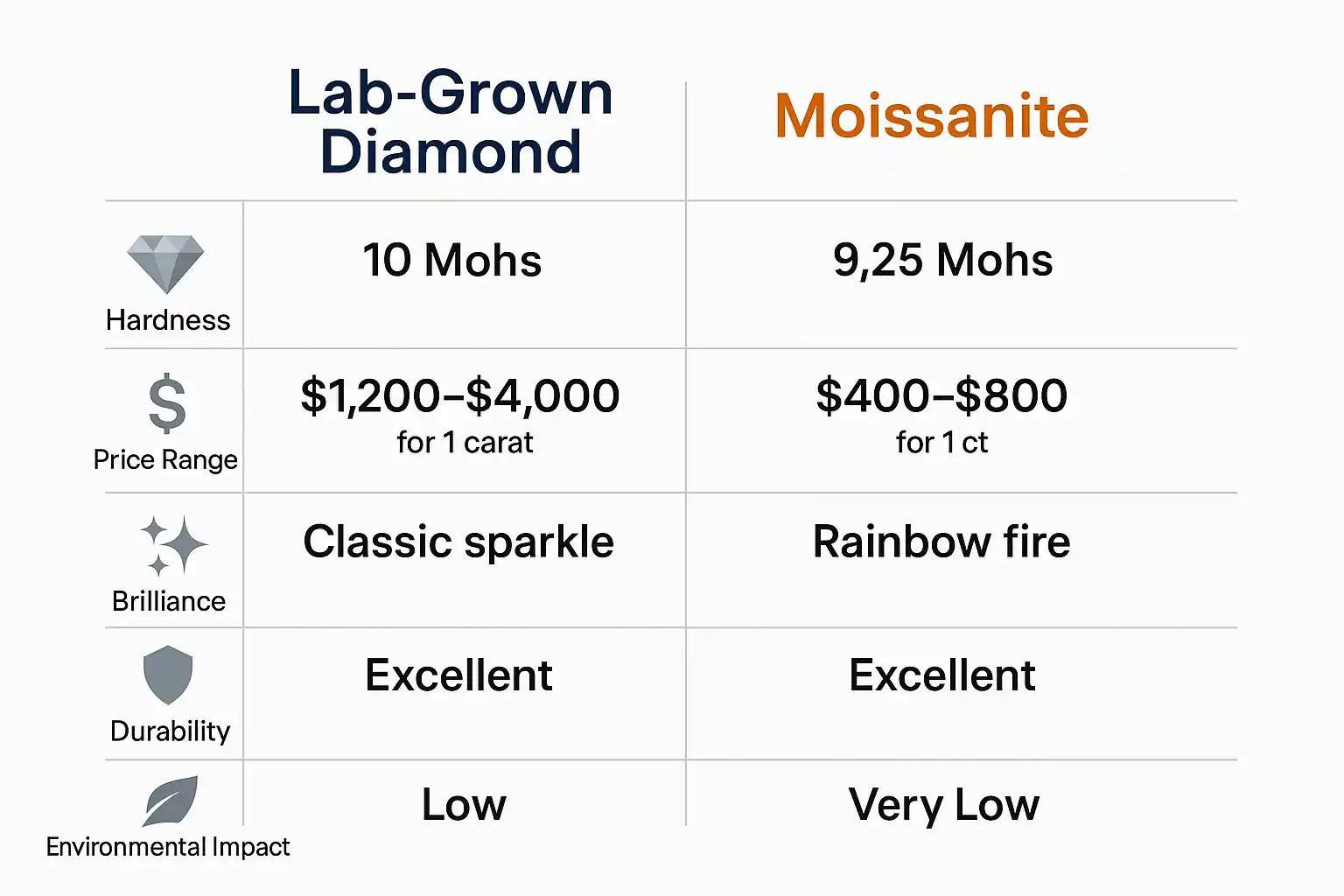 Lab-Grown Diamond (1 carat): $1,200 – $4,000