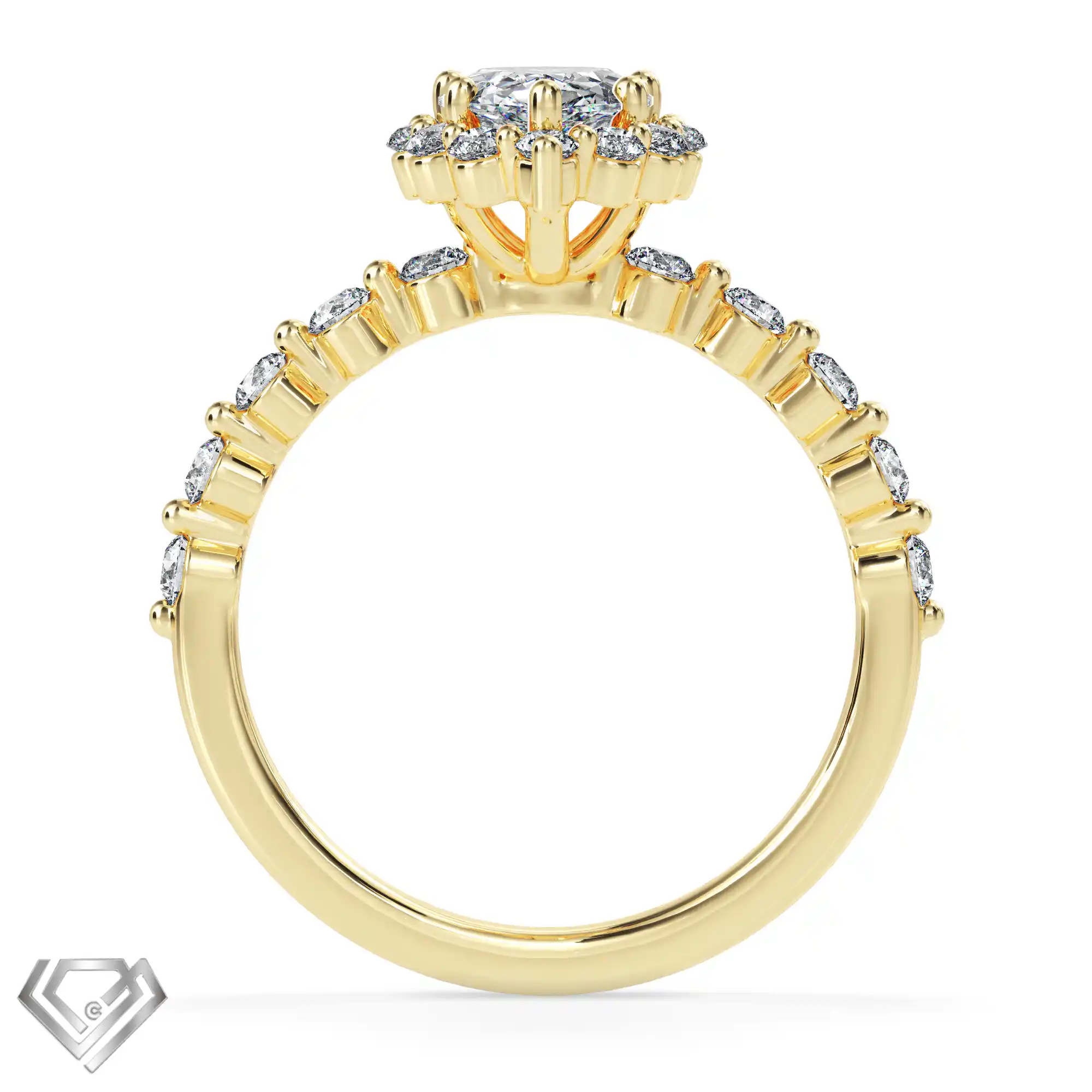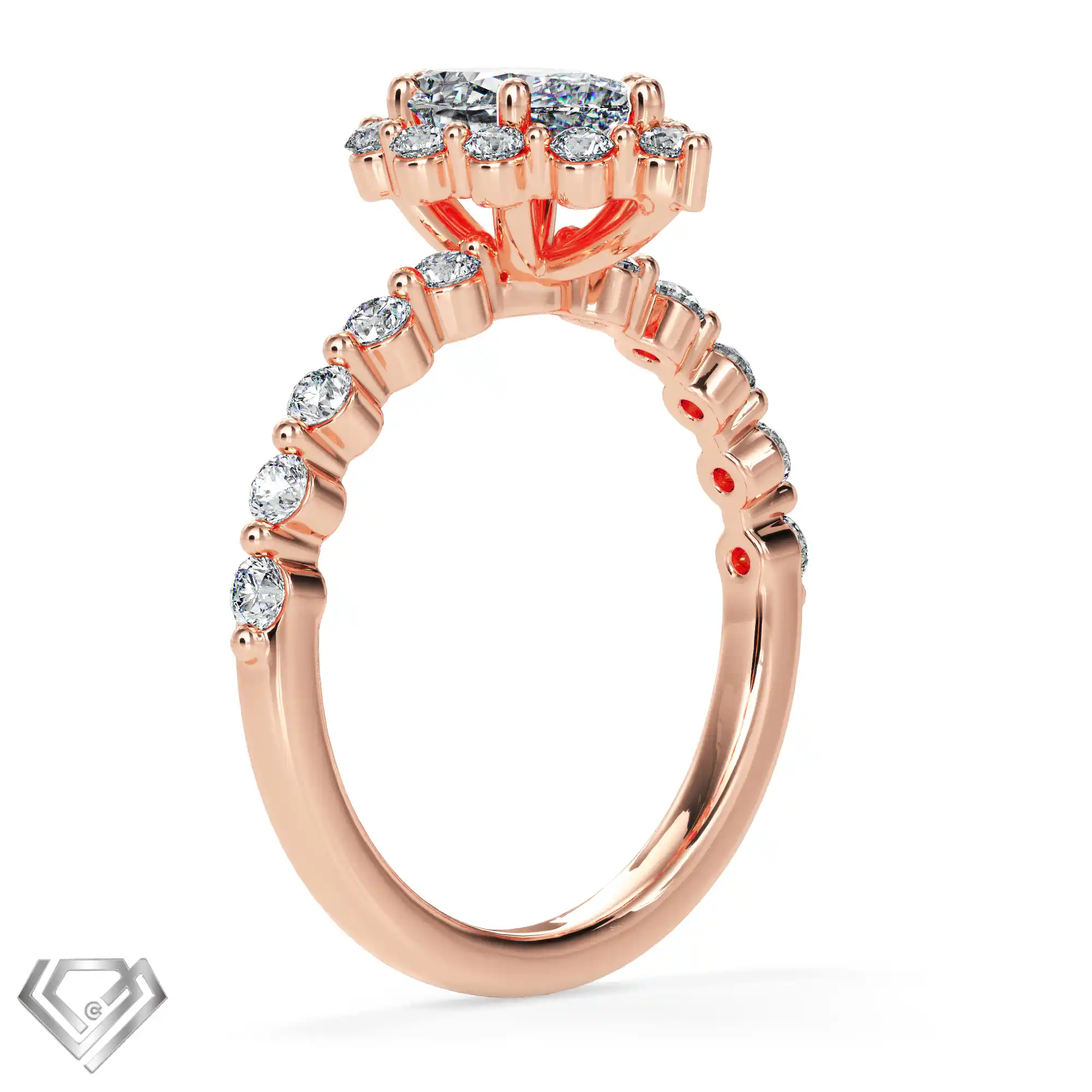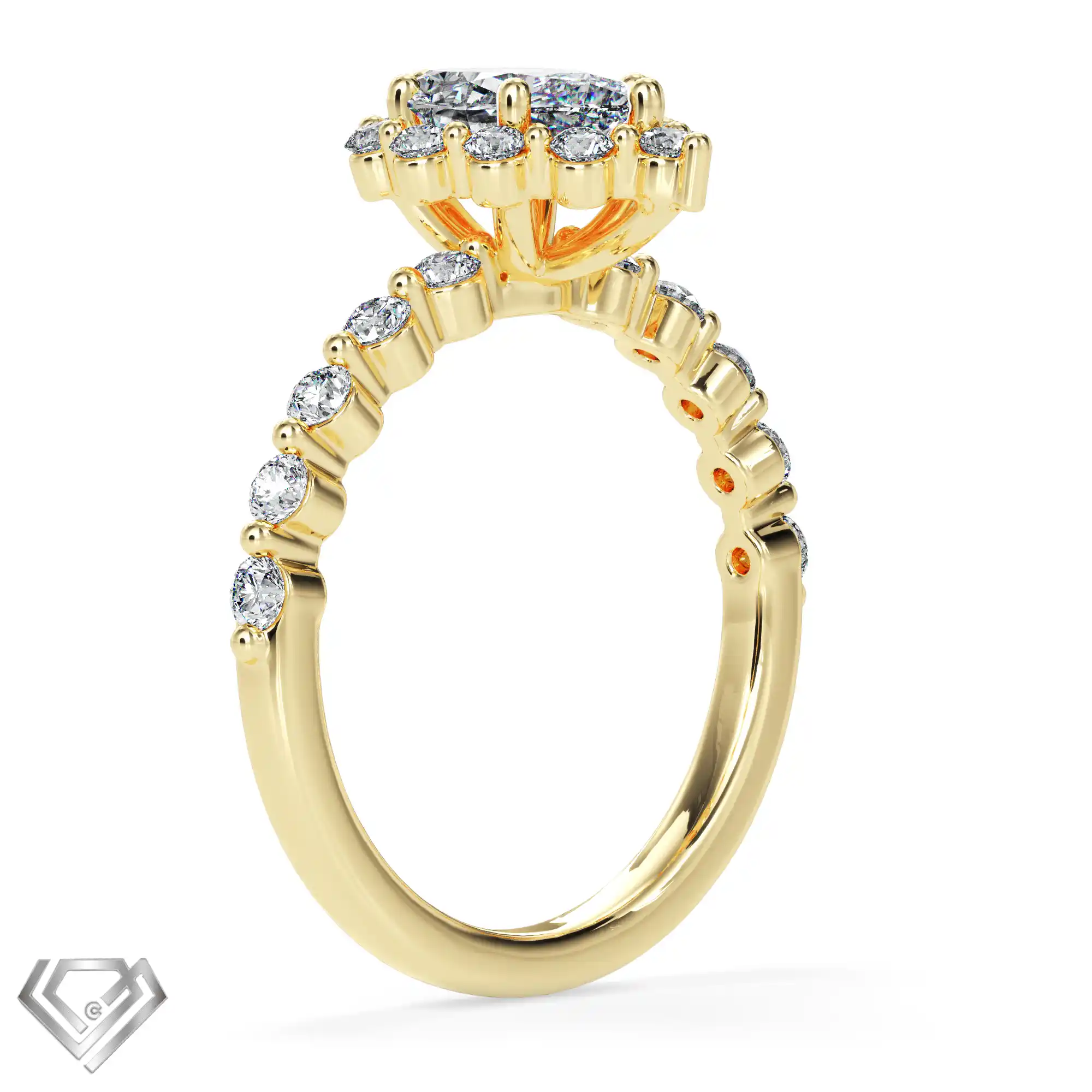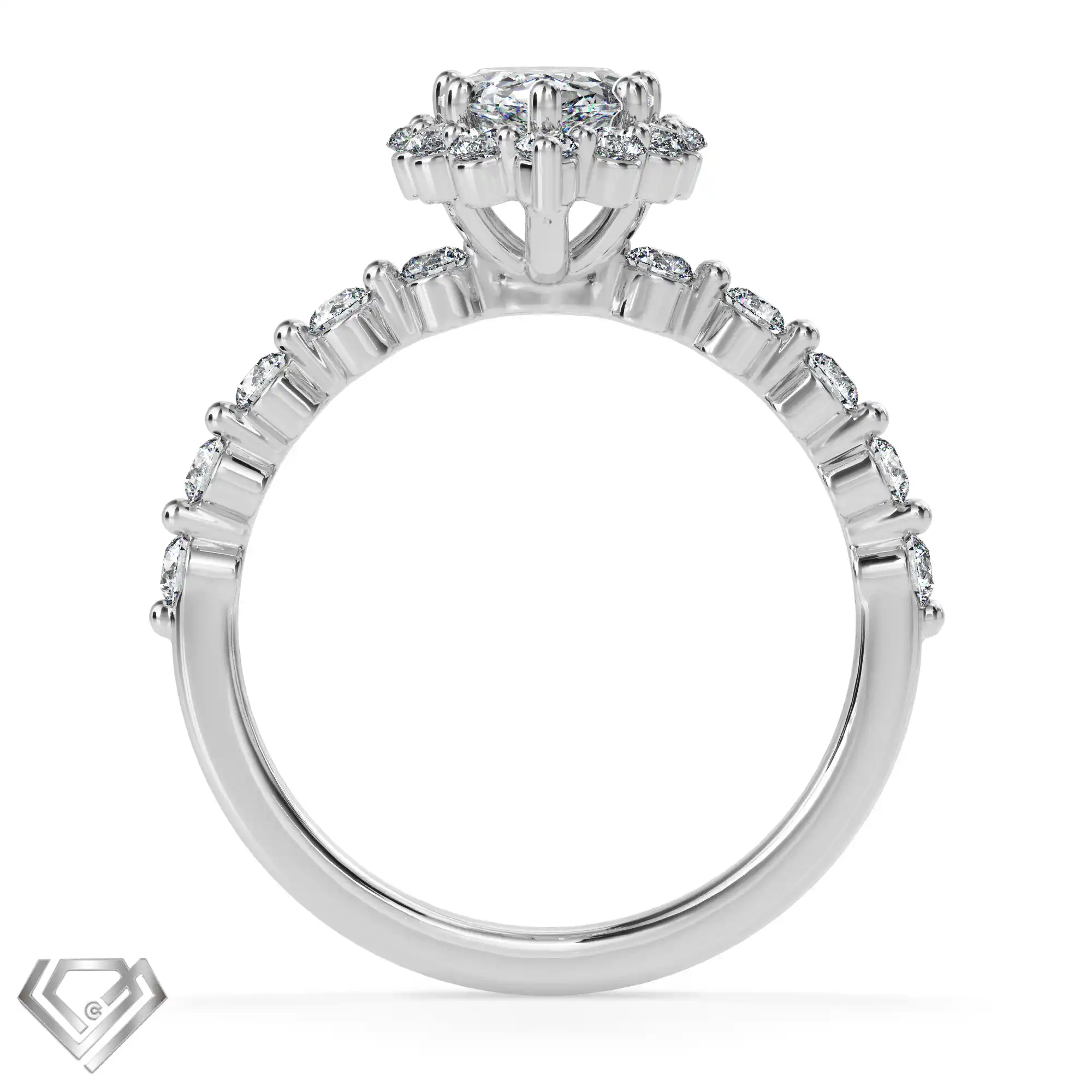 Silver ring set with 1 pear cut stone and 10 rbc 0.01ct stones
