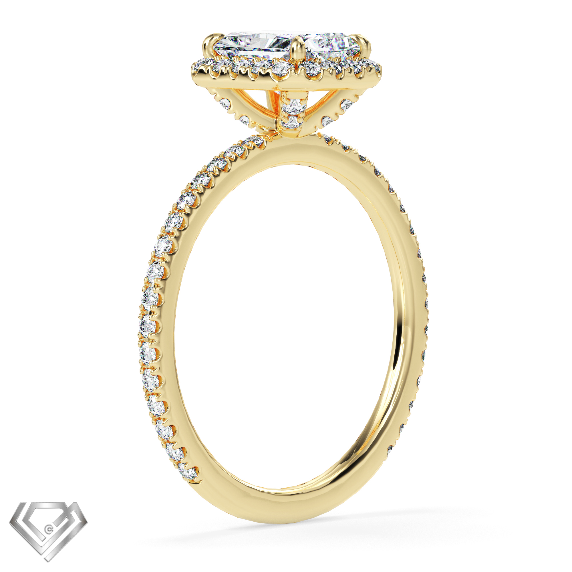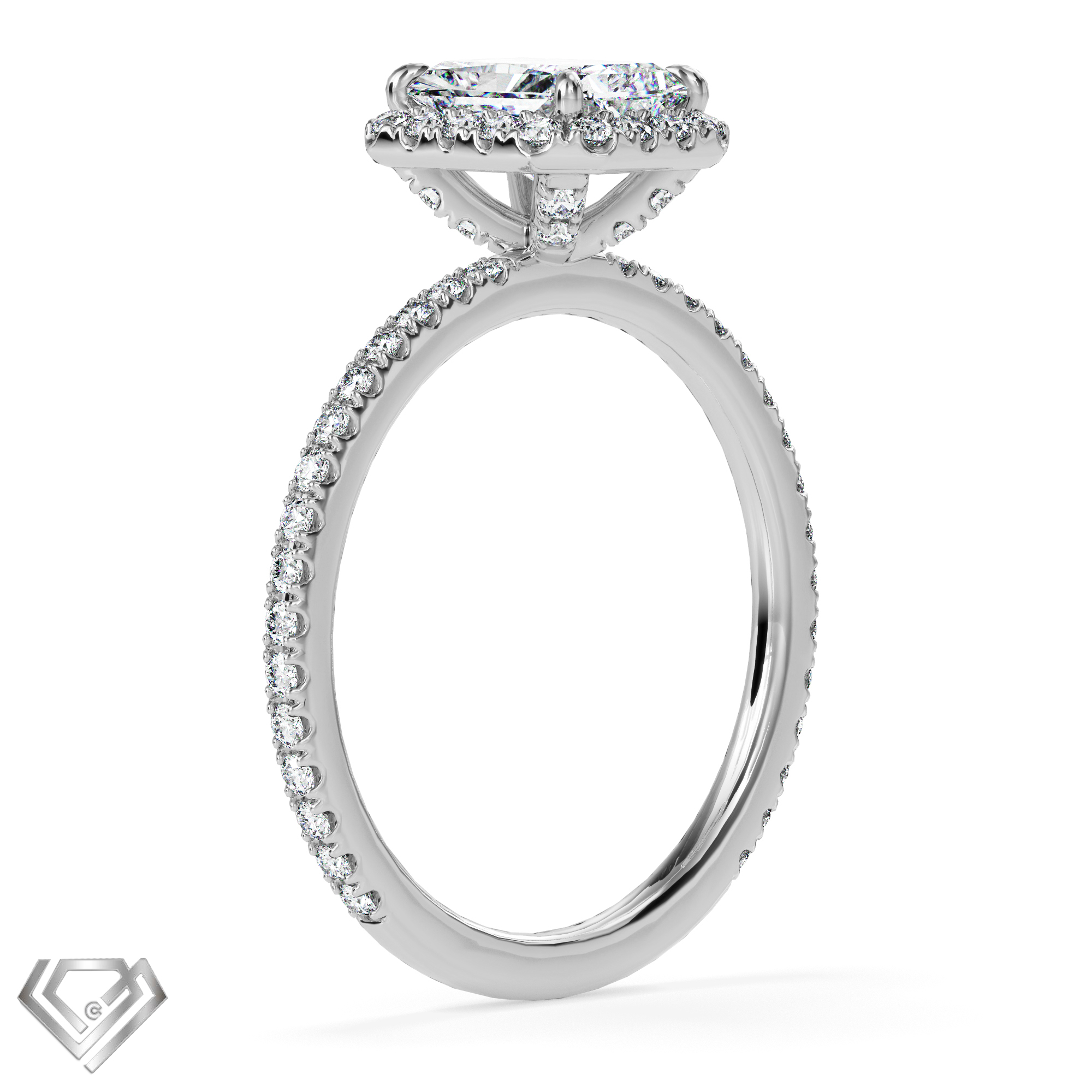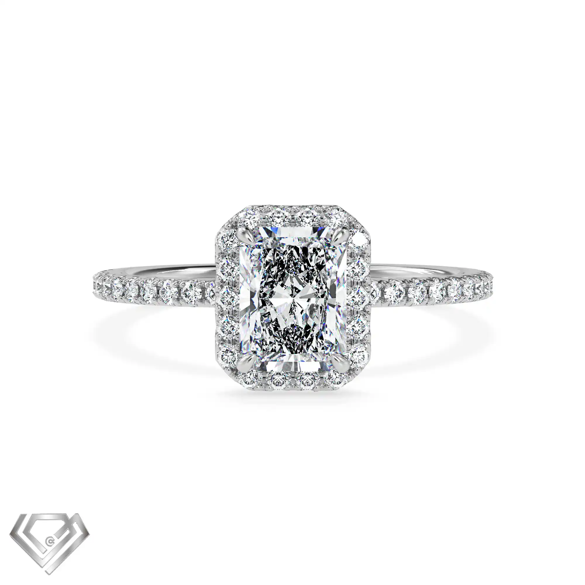Silver ring set with 1 radiant cut stone with 32 rbc 0.02ct plus 18 rbc 0.02ct halo and 8 rbc 0.02ct stones