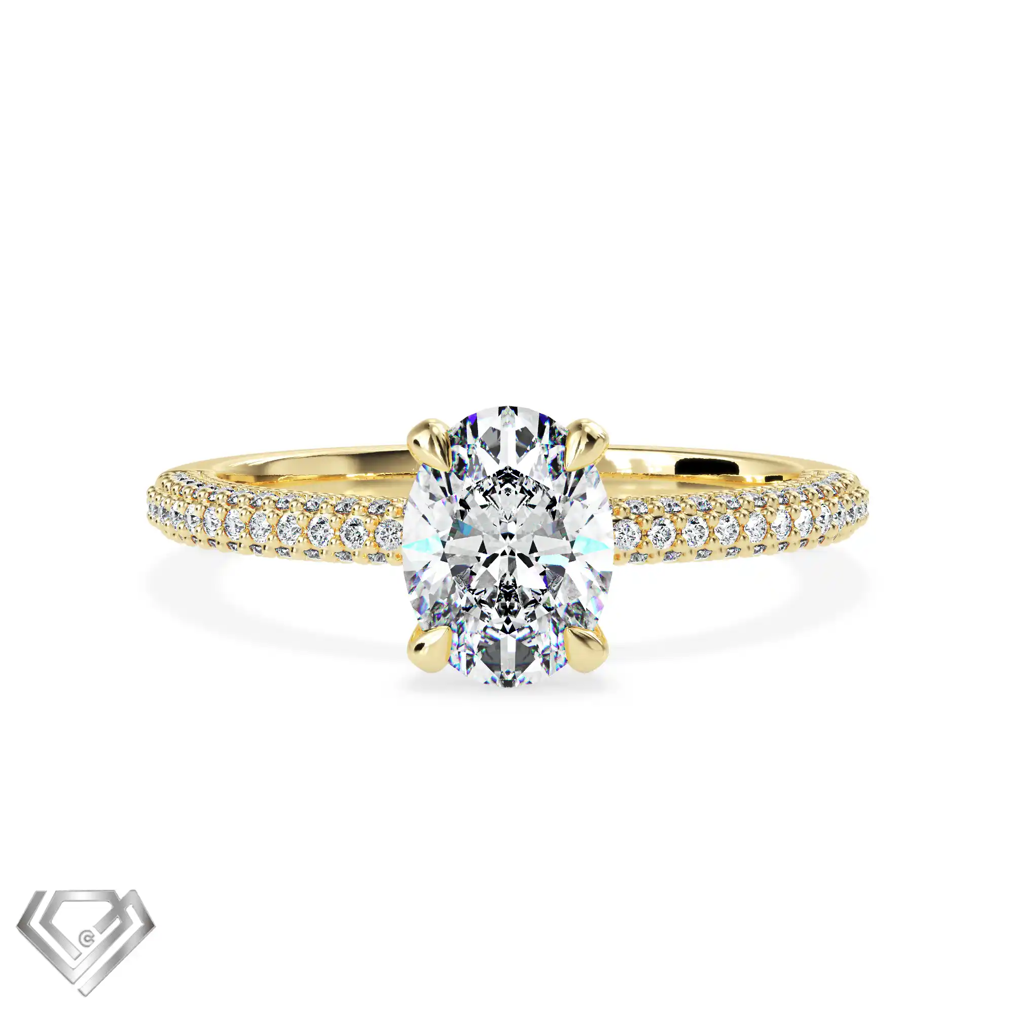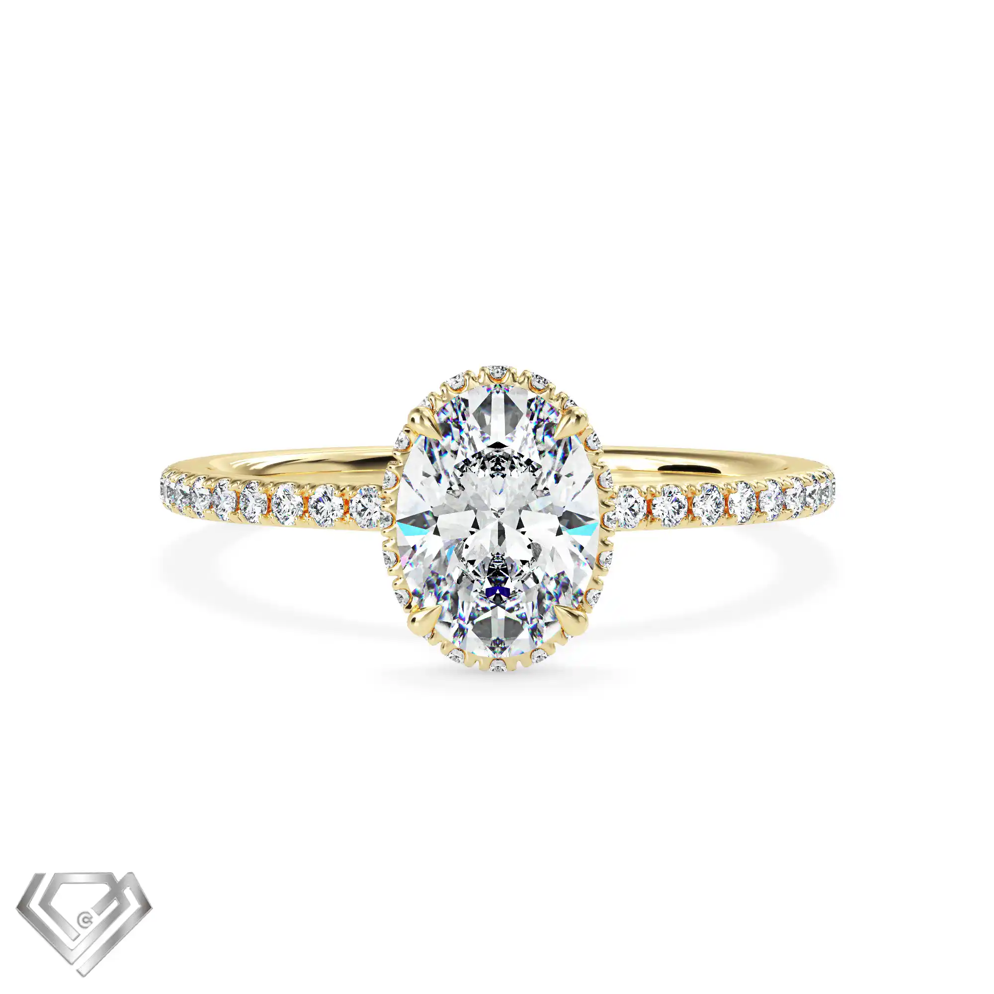 Silver ring set with 1 oval cut stone hidden halo and 62 rbc 0.02ct stones