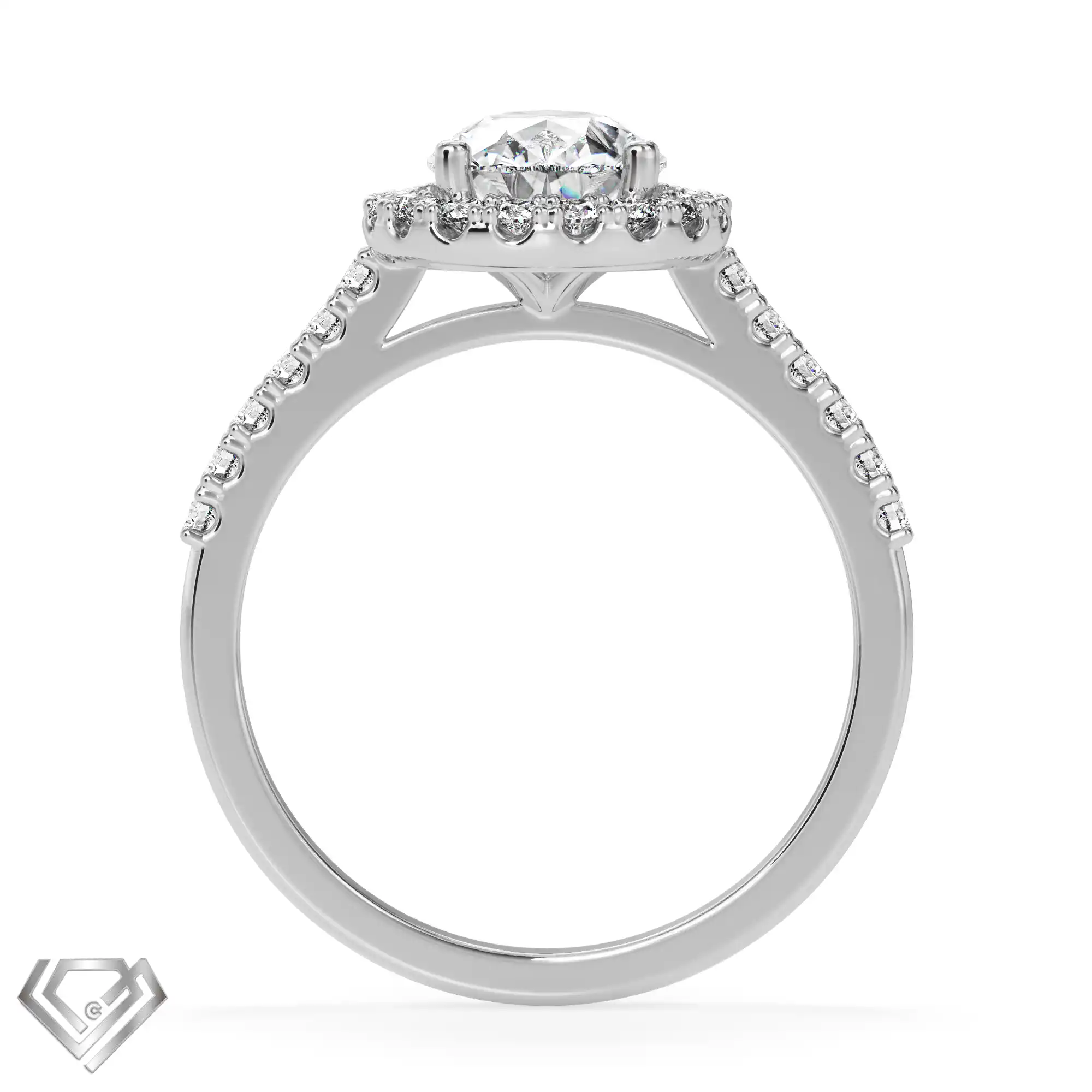 Silver ring set with 1 pear cut stone and 30 rbc 0.01ct stones